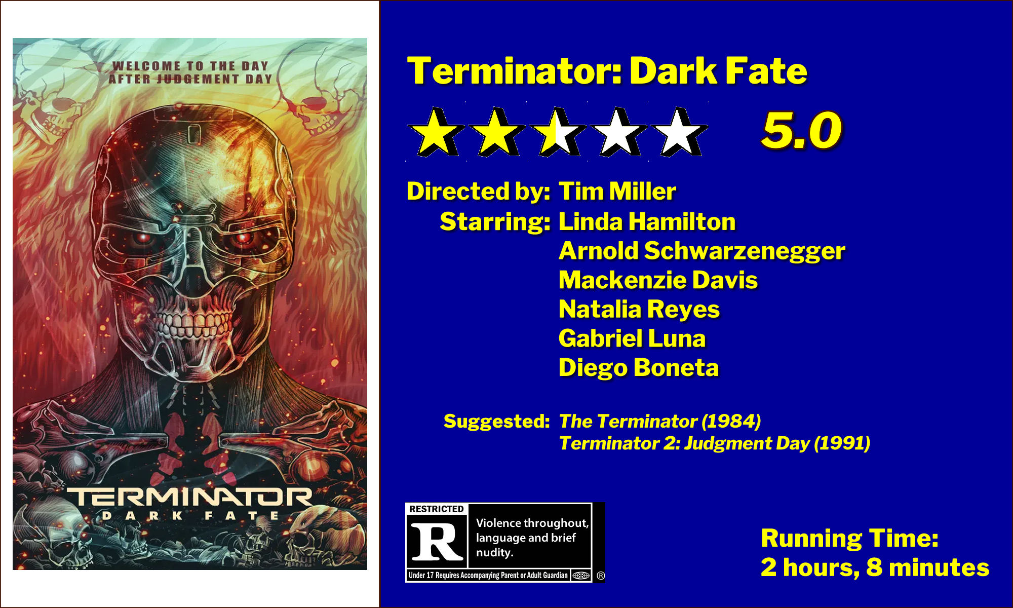 All-in-all, Terminator: Dark Fate is a disappointment. The return of Schwarzenegger, Hamilton and Cameron held out so much promise, and only Arnold and Linda delivered. Here’s hoping that Cameron is saving his best material for those Avatar sequels he’s been threatening us with.
