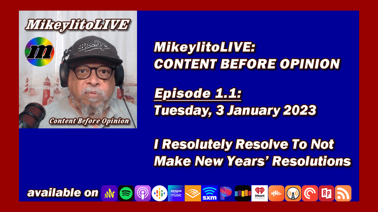 Likewise, check out my video content on YouTube, where I also hope you become a subscriber. I resolve to always tell you how I honestly feel, even if you disagree or it makes you uncomfortable. That’s not a New Year’s resolution; that’s a life resolution. It’s one I’m too old to break.